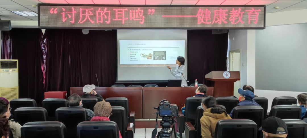 如何与耳鸣和平共处呢?助听器是越早戴越好,还是什么时候戴好?3月31日下午,北航校医院四层会议室内,温畅大夫正在向大家娓娓道来关于耳部健康的相关知识,台下的30多位老同志神情专注,有的还在用笔不断记录着。同时,线上还有近40位老同志认真盯着手机屏,不愿错过讲座的每一句内容。