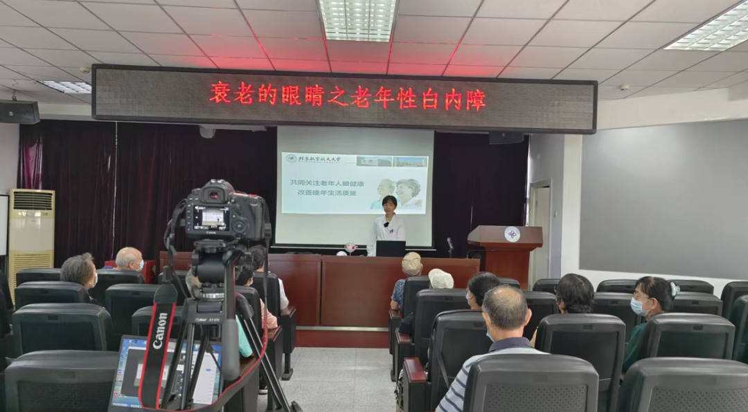 2022年6月6日是第27个全国爱眼日,校医院联合离退休工作处,于6月27日下午通过线上线下的方式举办了《衰老的眼睛之老年性白内障》讲座,主讲人为校医院全科任喆大夫。讲座过程中,现场10多位老同志,有的积极回答问题,有的用笔认真记录着;线上近30位老同志也积极通过留言、语音等方式和任大夫的互动。