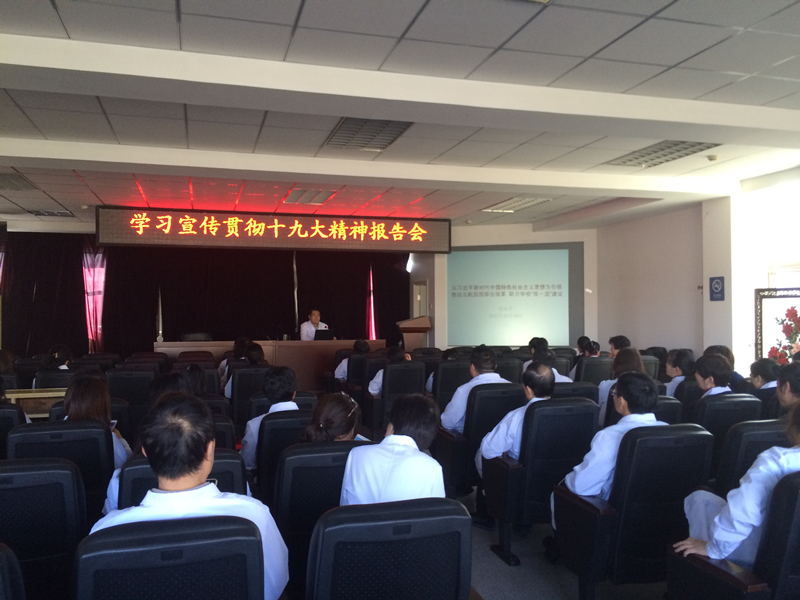 为了学习贯彻十九大精神,推动医院综合改革,2017年11月24日,校医院党总支书记徐亚军为全院职工讲了一堂题为“以习近平新时代中国特色社会主义思想为引领,推动北航医院综合改革,助力学校‘双一流’建设”的党课。