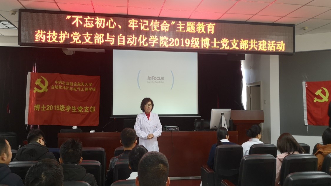 为扎实开展“不忘初心、牢记使命”主题教育,激发支部党员爱岗敬业、立德树人的奋斗意志, 12月5日下午,校医院党总支药技护党支部与自动化学院BY1903党支部在校医院四层报告厅开展了“不忘初心、牢记使命”主题教育支部共建活动。