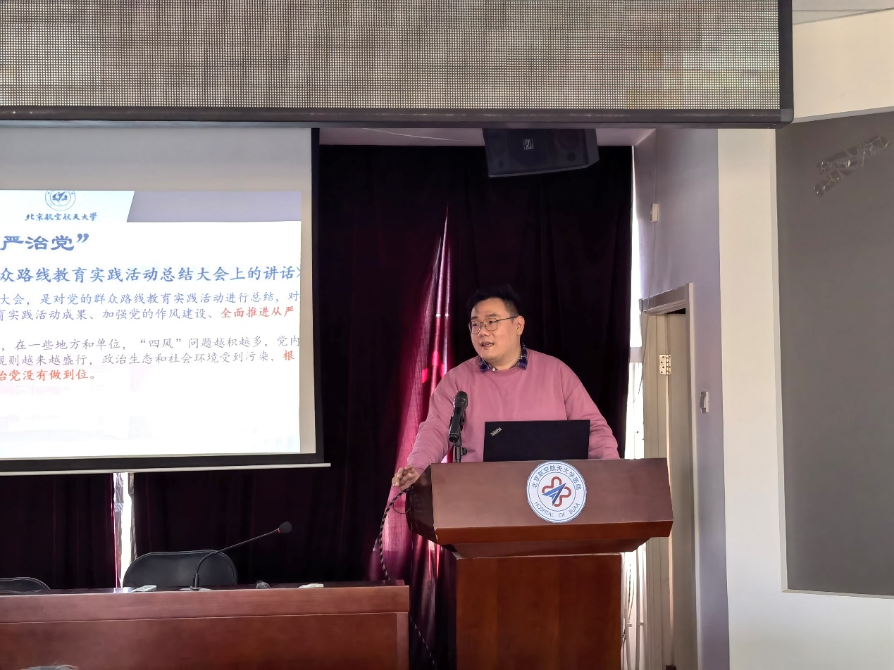 为扎实推进全面从严治党,提高“反腐倡廉每季一课”学习实效性,2024年3月22日,校医院第一党支部和第二党支部开展联学共建活动,邀请马克思主义学院王晨老师以“为何要全面从严治党”为题作专题党课。