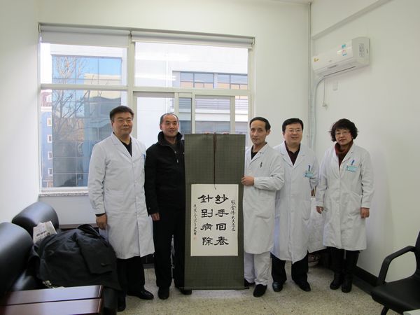 2011年1月11日下午,离退休老同志、党代会代表赵典军、宋子玉同志神采奕奕地走进了校医院理疗科诊室,将一面绣有“向为人民服务的好医生致敬”字样的锦旗和一幅亲笔所写“妙手回春 针到病除”的字画送到了校医院...